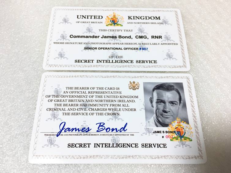 No.H036 007 SIS MI5 MI6風 ジェームス ボンド タイプ プロップIDカード 英国秘密情報部身分証風 ¥900