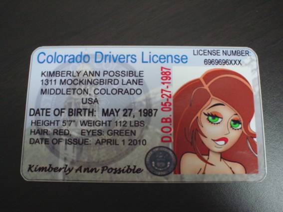 No.H007 キム ポッシブル コロラド州運転免許証風 タイプ プロップIDカード \500