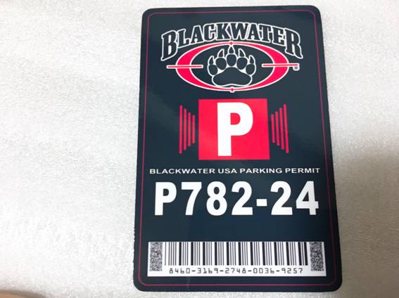 No.H077 ブラックウォーターUSA 米国駐車許可証風 プロップIDカード 白色 \500