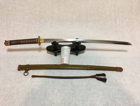 昭和27年登録。 うぶ刃も残り、練よく、なかごの長い、太くて重い昭和の軍刀身です。