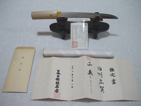 日本美術刀剣保存協会 【 三原 】 保存刀剣鑑定書付属
